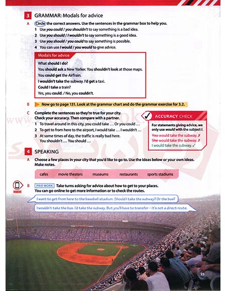 در هر درس بخشی به نام Writing and Grammar هست که به طور ساده و کاربردی دستور زبان را آموزش میدهد.